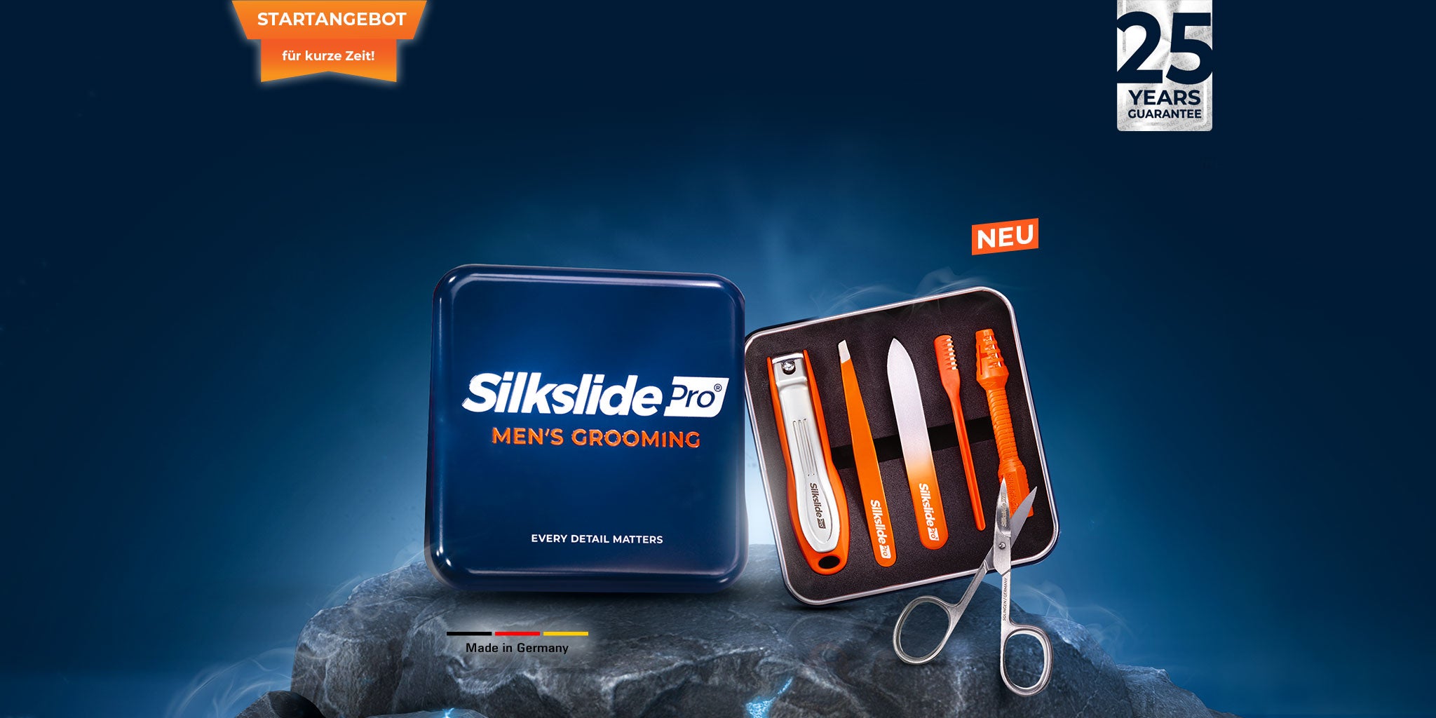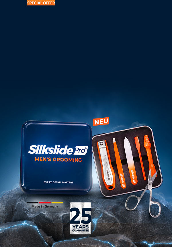 Unser neues Silkslide®Pro Männerpflegeset vereint die wichtigsten Tools für die tägliche Pflege. Jedes Produkt überzeugt durch einzigartige Features und wird größtenteils in Zusammenarbeit mit regionalen Manufakturen in Deutschland gefertigt. Machen Sie sich selbst oder jemand anderem eine Freude mit einem Geschenk, das Qualität und Handwerkskunst vereint.