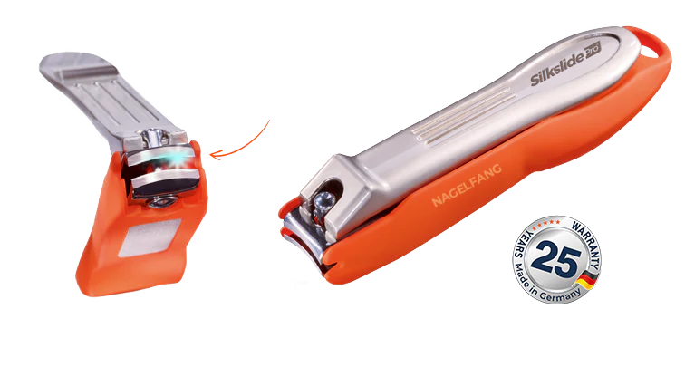 bietet mit seiner gebogenen Klinge präzise und saubere Schnitte, die sich der Nagelform anpassen. Dank optimaler Größe für Hände und Füße sowie integriertem Nagelfang bleibt Ihre Nagelpflege stets einfach und sauber. 25 Jahre Garantie sind inklusive.